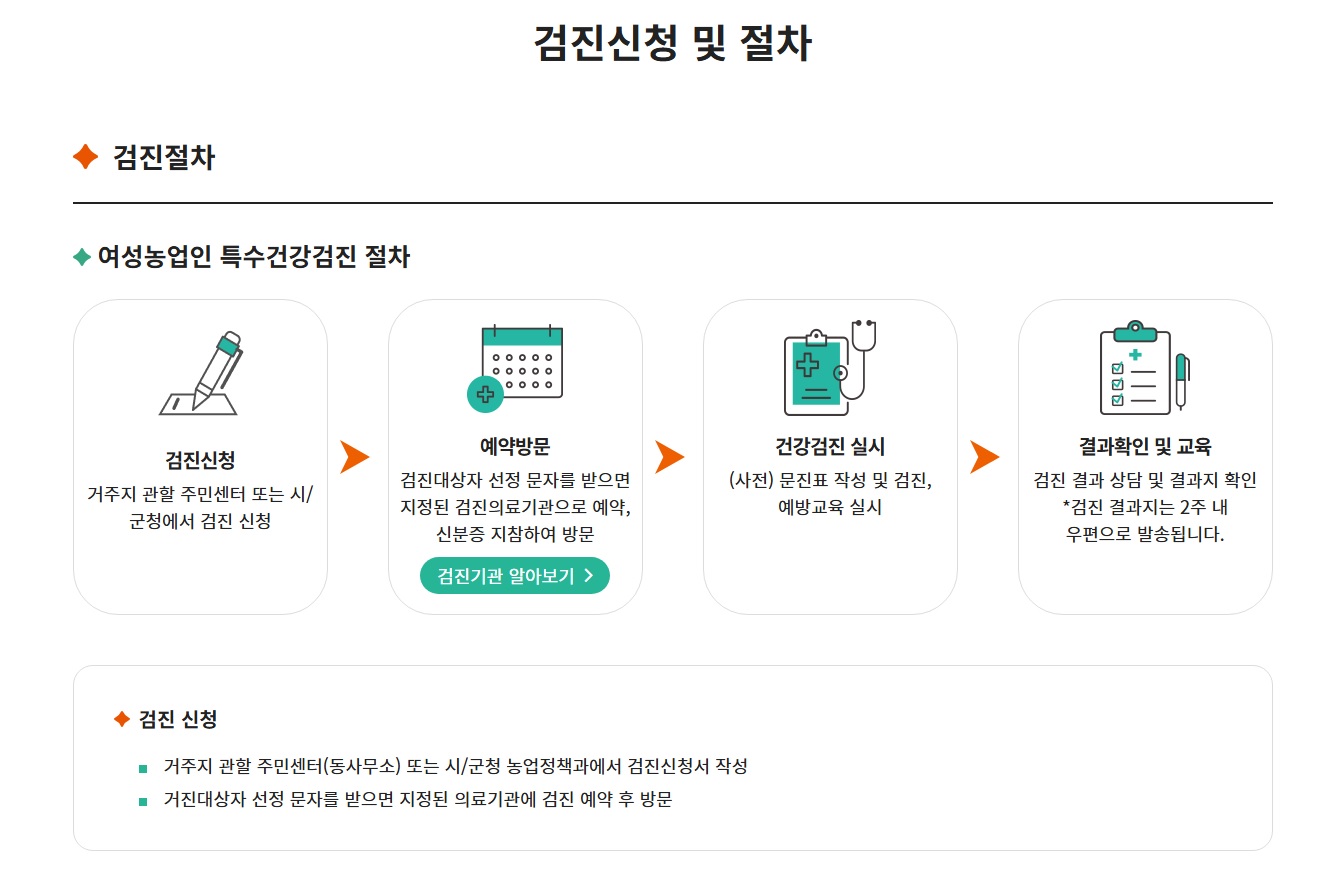 (출처: 농림축산식품부 2025년 여성농업인 특수건강검진 사업 지침, 농림축산식품부 보도자료)