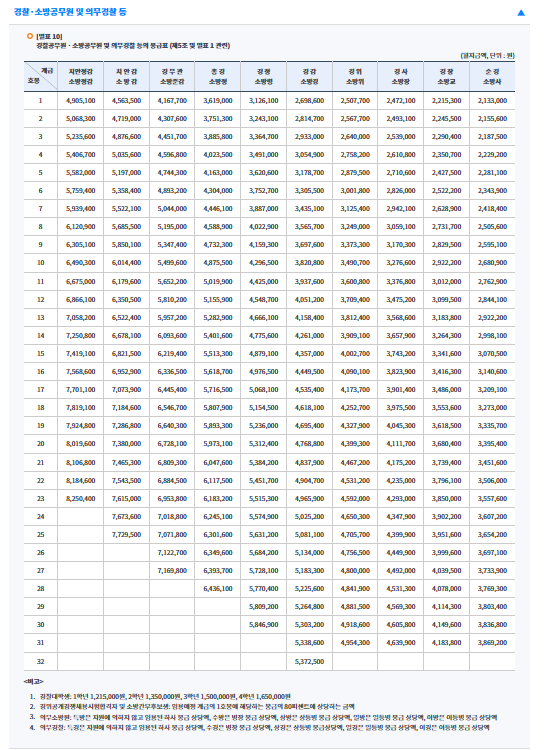 2026년 경찰·소방공무원 봉급표